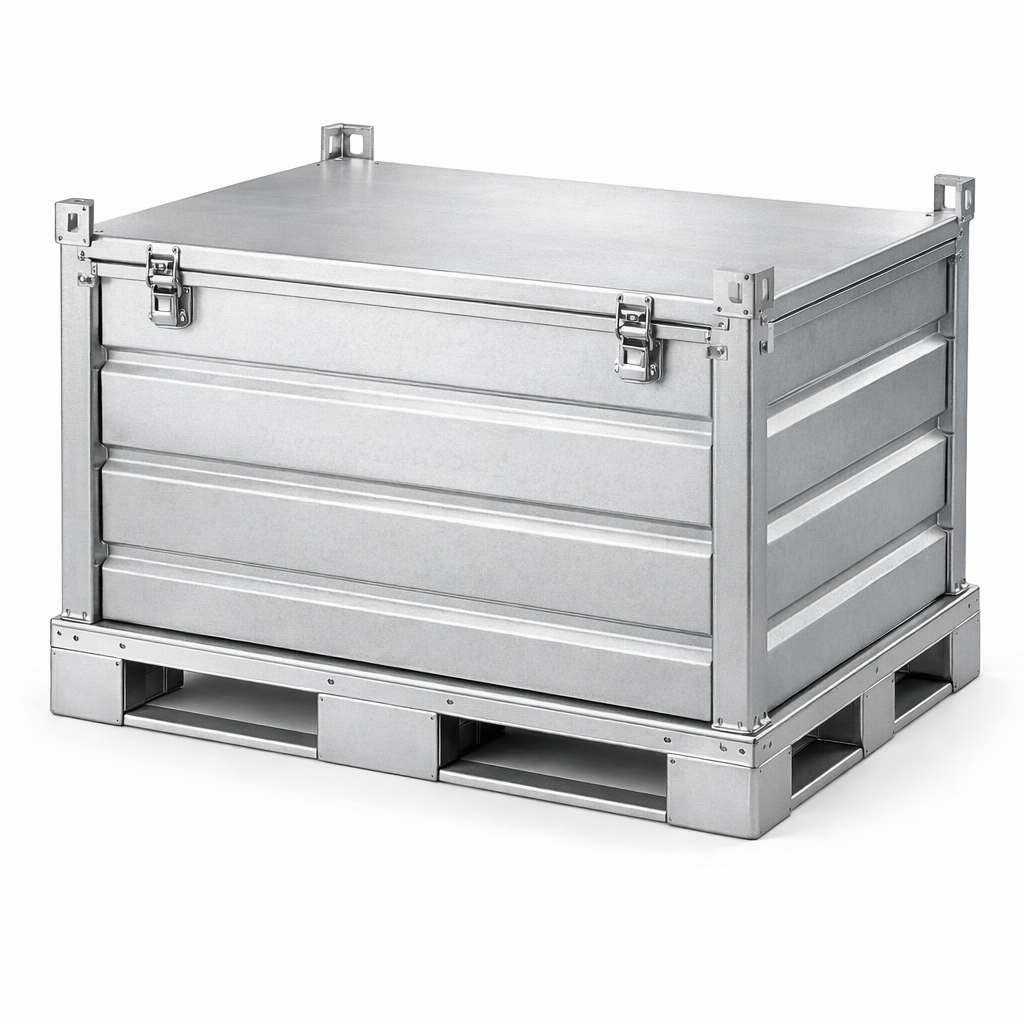 La caisse palette métallique avec couvercle est idéale pour les professionnels souhaitant protéger davantage leurs produits pendant le stockage ou le transport. Sa structure métallique garantit une excellente résistance, tandis que son couvercle apporte un niveau de protection supplémentaire contre la poussière, les salissures et certaines agressions extérieures.